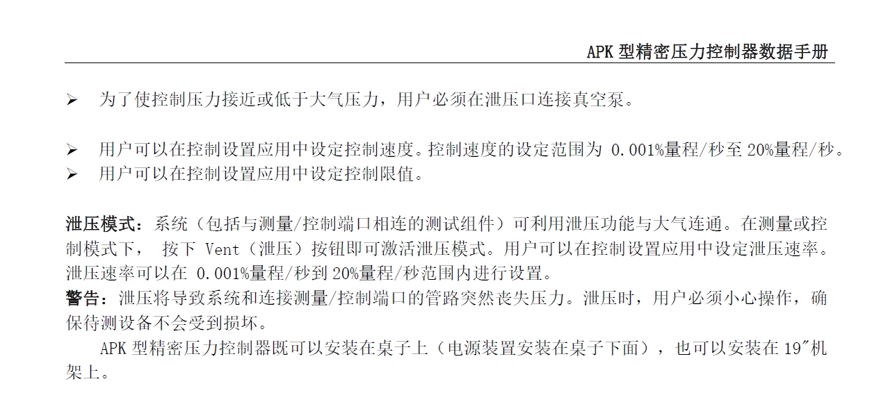 APK 型精密壓力控制器采是一款單通道/多量程自動壓力控制儀,采用現(xiàn)代高精度壓力傳感器技術(shù),精度高達(dá)0.01%FS,可實現(xiàn)卓越的測量精度和長期穩(wěn)定性,特別適合作為變送器制造的生產(chǎn)工具、壓力測量儀器的校準(zhǔn)和維護工具,也可作為各類壓力測量儀器校準(zhǔn)的工廠/工作標(biāo)準(zhǔn)。