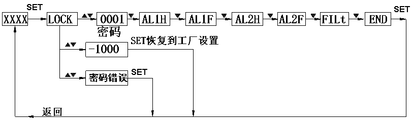 ●若30秒無鍵按下,則自動退出設(shè)置狀態(tài),但是不保存所修改的數(shù)據(jù)。