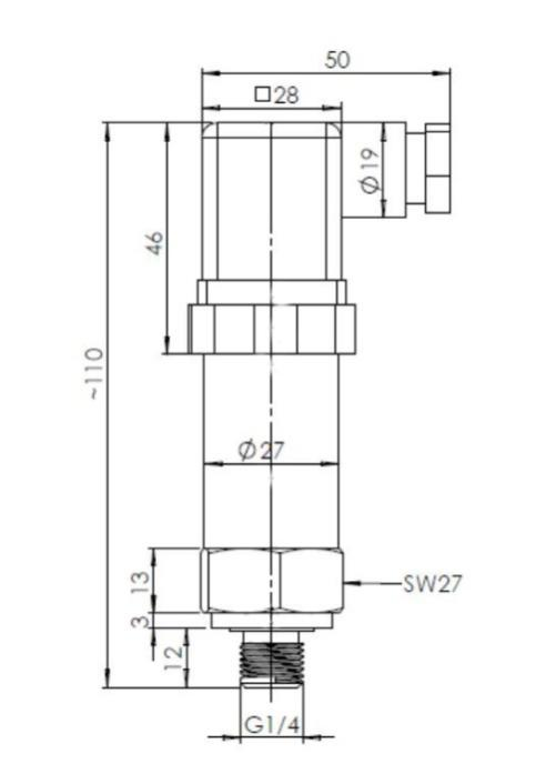 SPT21型壓力變送器的壓力接口為G1/4外螺紋,可以直接安裝在測(cè)量管道的接頭上。為便于安裝和維修,接頭與管道之間建議加裝截止閥。