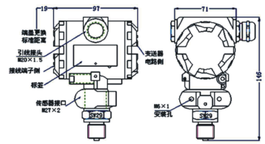 信號端子設置在電氣盒的獨立艙內。在接線時,可擰下接線側的表蓋。電源是通過信號線接到變送器的,不需要另外的接線。